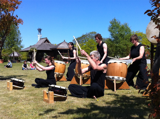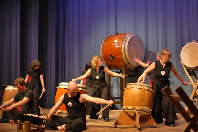 10 Jahre japanisches Trommeln in Hamburg - 10 Jahre Tengu Daiko. Gemeinsam mit den Hamburger Taikogruppen Yo Bachi Daiko, Kion Dojo, Tama Daiko, der Flötistin Akiko Kataoka und dem japanischen Solotrommler Yoshiyuki Kimura war unser 10-jähriges Jubiläum ein großer Erfolg - und das Publikum überwältigend!